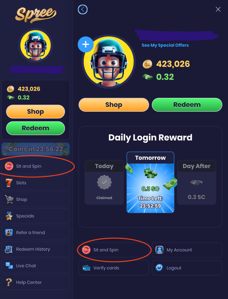 Spree Casino – Free S”it & Spin” side game